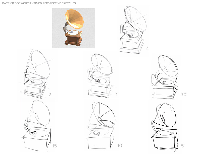 Submit a page of your drawings labeled with the time for each one in the comments below by July 6th in order to be considered for the prize. Marshall will select three entries for a prize.