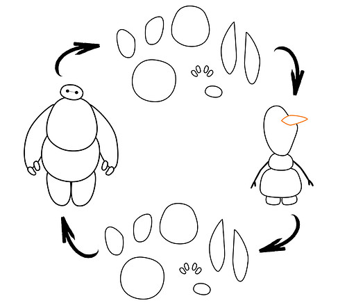 What about now? Change up the proportions a little bit. Or a lotta bit.. And you get a totally different, very recognizable character!