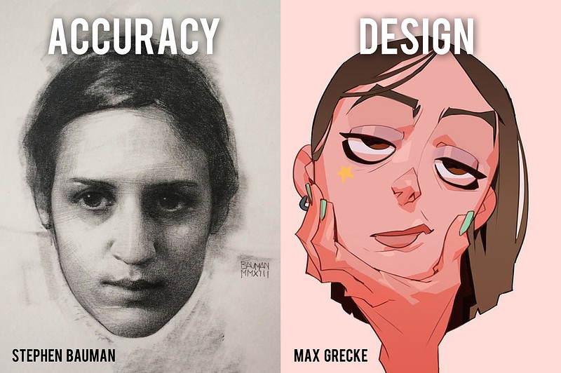 If you’re early in your journey to art mastery, you probably don’t know what your style will be or what job you’re gonna have. And actually that doesn't matter, because we should practice both. We should train our eyes to see accurately and we should be able to break from reality to design our own shapes that we see with our head, not our eyes.