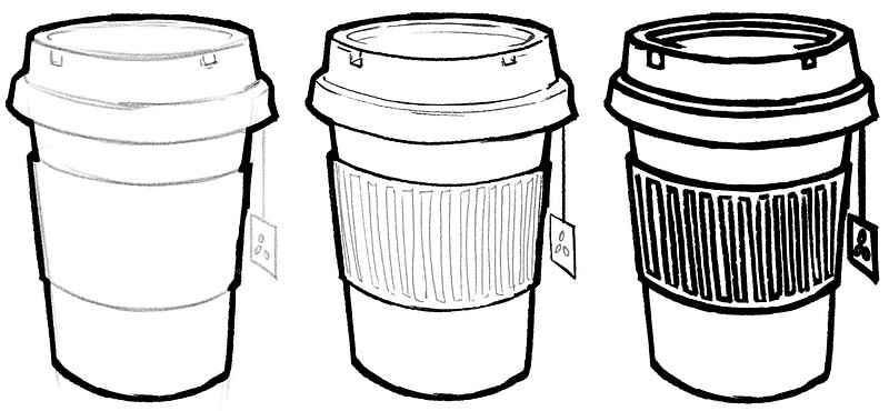So.. it's up to you to decide how you want to group the elements in your drawing. Earlier I considered the cup as a single element. But I could have separated the cup, lid, and sleeve. We can unite or separate elements to affect their perceived importance.