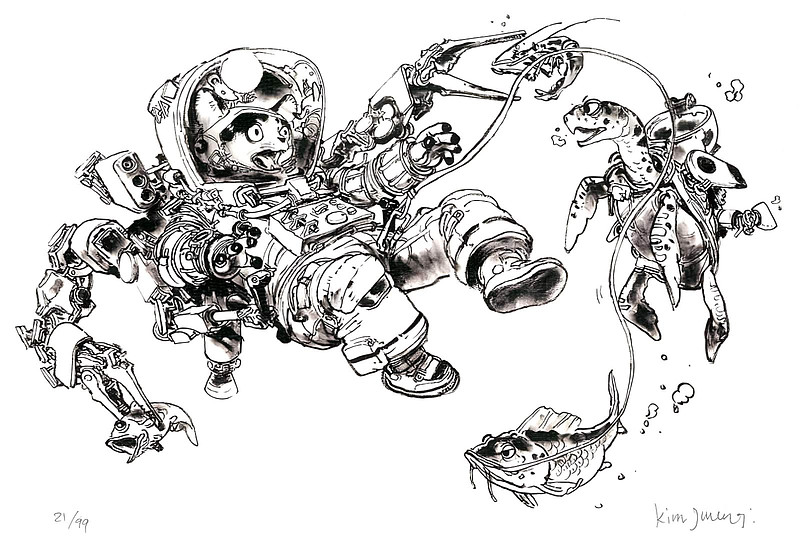 In this Kim Jung Gi drawing he occasionally used thick lines on the inside. So, heavy on the outside is just ONE way of organizing line weight. But it's a very commonly used one, so it’s a good place for us to start.