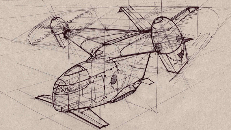 Take a look at Scott Robertson’s drawings. Clear communication is really important in industrial design. So line weight is an important tool to have control of. Scott’s drawings are a great example of this. Not only does he emphasize the bigger forms over the smaller details, but he also uses it to show depth. The line gets thicker as the wing comes towards us. And the line gets thinner as the other wing goes away from us.