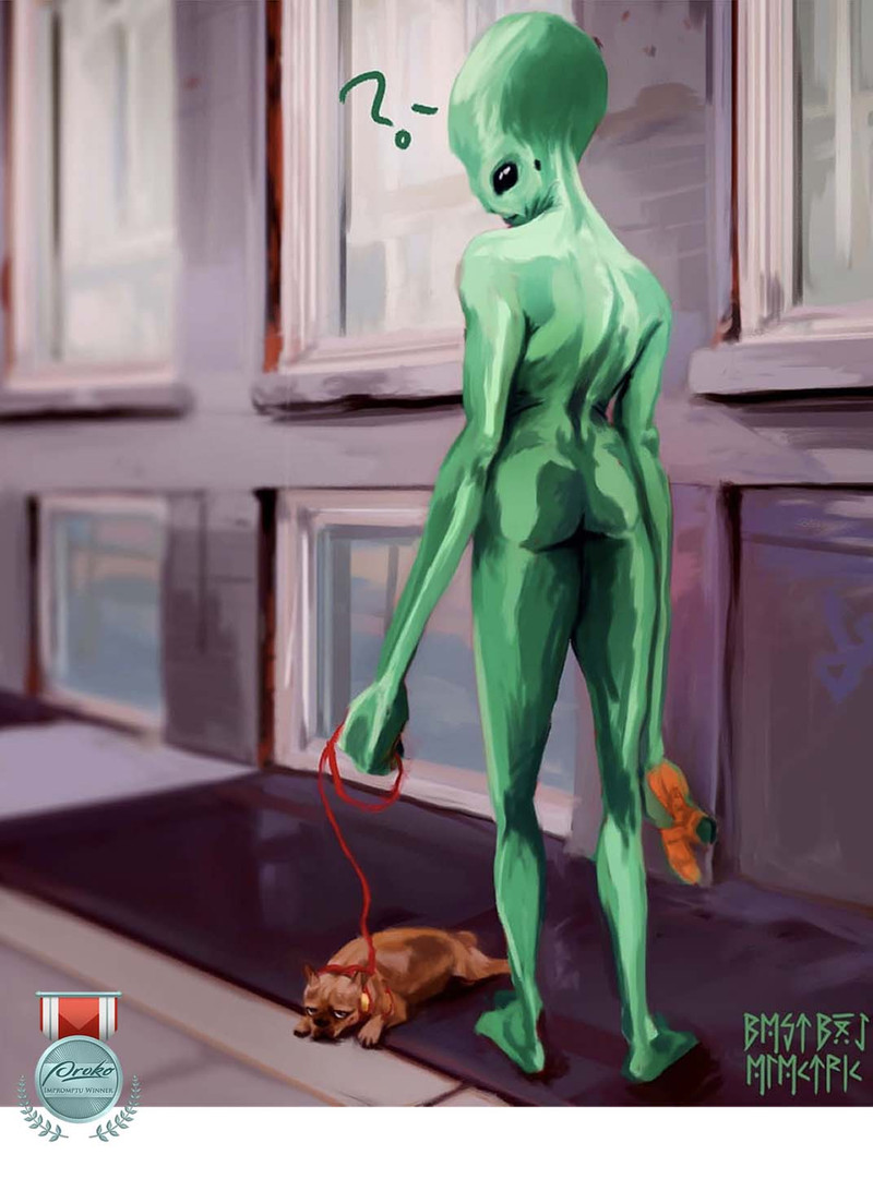CHALLENGE:Depict first contact with intelligent life! Any medium, traditional and digital, 2D and 3D are allowed.