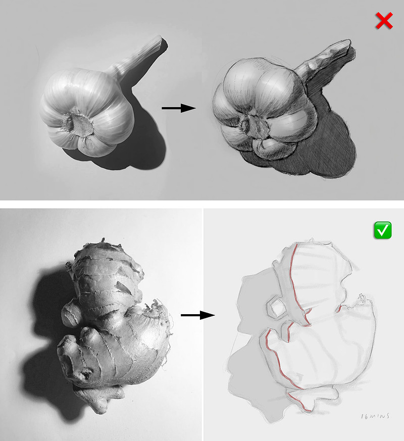 White or light objects with matte (not shiny) surfaces are ideal. Good examples are toilet paper rolls, eggs, garlic, paper cups, folded paper, etc. You can also cover any object with white paint and then draw it. 😀 For now, avoid shiny objects, such as glossy ceramic. Avoid complex objects unless you have plenty of time to draw.