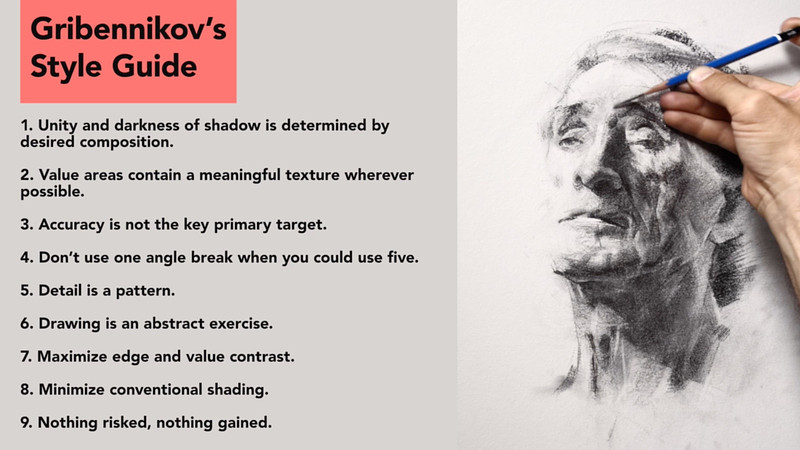 The lessons in this course build a framework for seeing style through the lens of structure, shape design, value organization, edges, mark-making, and composition. Instead of copying the surface of a drawing, you learn to read the decisions that gave the drawing its character. This approach chills out the sense of information overload that online students often experience and replaces it with a clear sequence of what to look for and why.