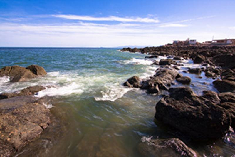 That's because we're looking through a layer of particles and air molecules. This atmospheric layer scatters light from the sky and makes distant objects blue, during the day.. At sunrise or sunset, you could see warmer tones, reds oranges, and yellows. The greater the distance, the thicker the layer you’re looking through and the effect is more intense.