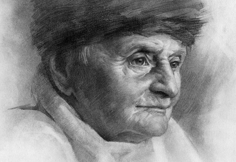 I tried doing the same thing at the top of the hat, by making the value lighter, closer to the background. By doing this around the perimeters of the portrait, it draws the eye to the center of the face, where there is a lot of contrast.