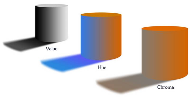You can show a change of plane with transitions of value, hue, or chroma. But the most effective is value. You can show a little bit of form with transitions of hue or chroma, but not nearly as much as a gradation from a bright highlight to dark shadow.