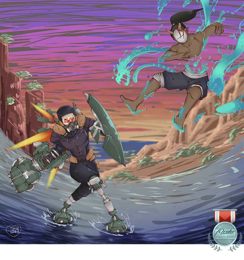 CHALLENGE:Illustrate an action packed, one on one battle, two characters going head to head. Who is going to win? Who or what are the characters? All media acceptable! Do a drawing, painting, sculpture, digital, traditional, 2d or 3d, anything goes!.