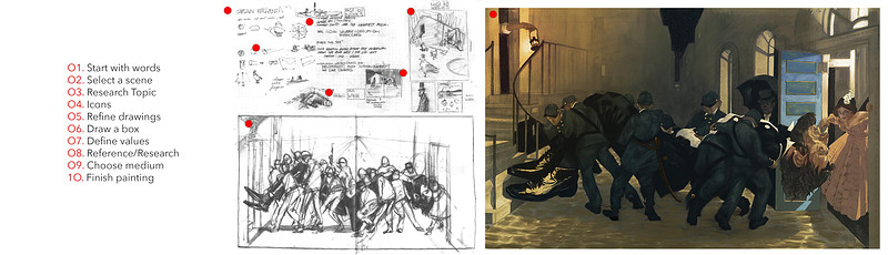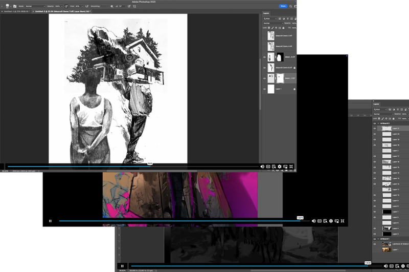 Part 2: Real-time painting demonstrations that challenge you to explore a variety of media from traditional ink, marker, watercolor, mixed media and acrylics, as well as digital demonstrations to develop your final concepts into professional portfolio ready pieces.