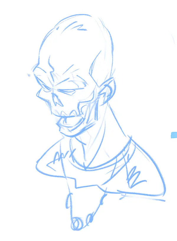 To kick things off, start with a rough sketch of your illustration. In the tutorial, I chose a character resembling a zombie-ish monster. Sketching something like this allows me to play more with textures and lets me be more playful with the inking.
