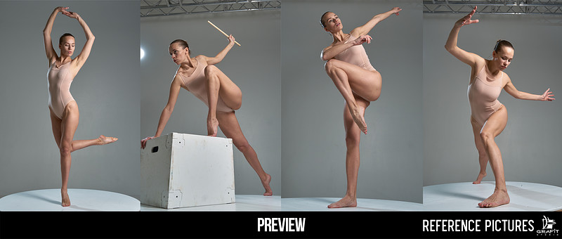 Grafit Studio presents: a dynamic reference pack with 1400+ action poses featuring both male and female models. The set combines explosive combat-inspired movements with elegant, flowing gestures — from powerful staff attacks, jumps, and lunges to expressive balance-driven poses.