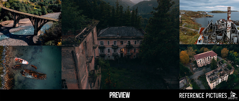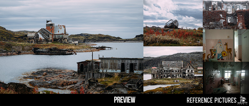 This reference pack was created for concept artists who love telling stories through environments. Inside, you’ll find a rich mix of abandoned landscapes, weathered architecture, forgotten cars, and beautiful natural scenes — all captured with atmosphere, texture, and mood in mind.