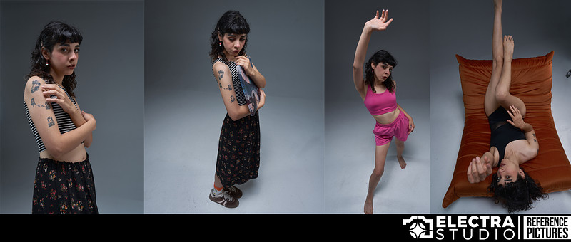You’ll find the model in cozy pink sportswear and a stylish black swimsuit, posing naturally while sitting on a puff, standing, or reclining. Each shot is filled with calm energy and warmth, making it a perfect reference set for artists who love drawing relaxed, life-inspired poses.