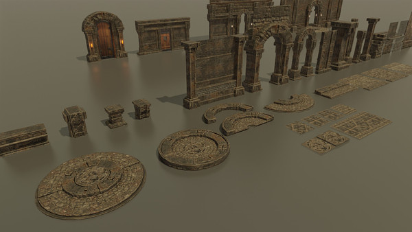 Create your own modular Dungeon areas using this 3D Kit for concept art. From Doors, floors, modular walls, archways, animated flame torch and more. This kit includes 4k textures for all the models.