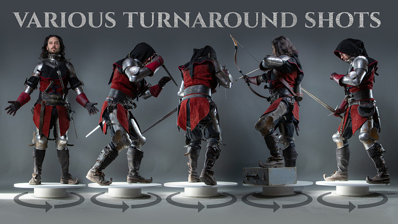 In this pack you'll find many turnaround poses, action scenes and portraits. Model is using weapons like sword, knife and a bow. Knight vol.3 photo reference is a great pack for everyone who is looking for a cool badass character to portray. You'll find many poses which can be used on book covers. There are portraits with various emotions and lighting also. Are you working on a comic book? Then, you'll be pleased with dynamic poses and angles. This model is skilled in acting , sword fighting and bow shooting. Are you working on a concept art or a project involving photobashing? This pack is full of various poses that will help you boost an inspiration. I hope you'll find a good use for this character in your work whether it's for books, posters, 3D sculpting or your own special projects.