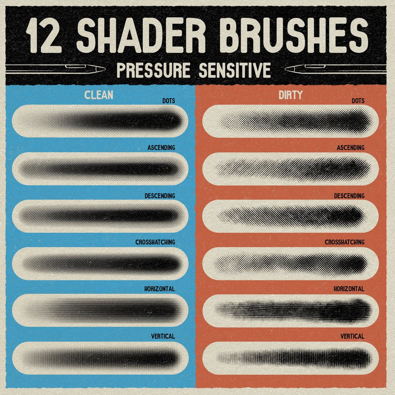 Each brush is built from scratch using custom-made texture samples to create a crispy set of tools that combine seamlessly with one another to bring the look of old-school comics or manga to your workflow.