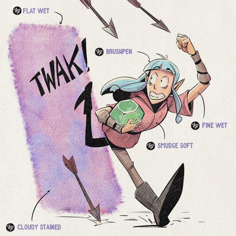 - Everything You Need – Wet brushes, dry brushes, textures, splatters, overlays—even lineart tools to take your piece from sketch to finish.