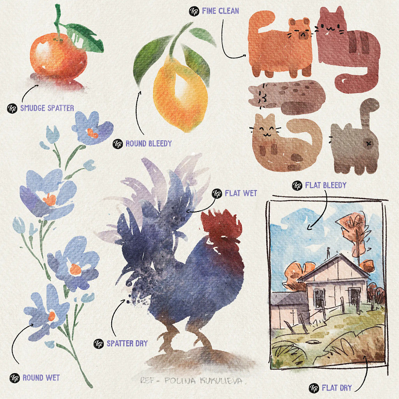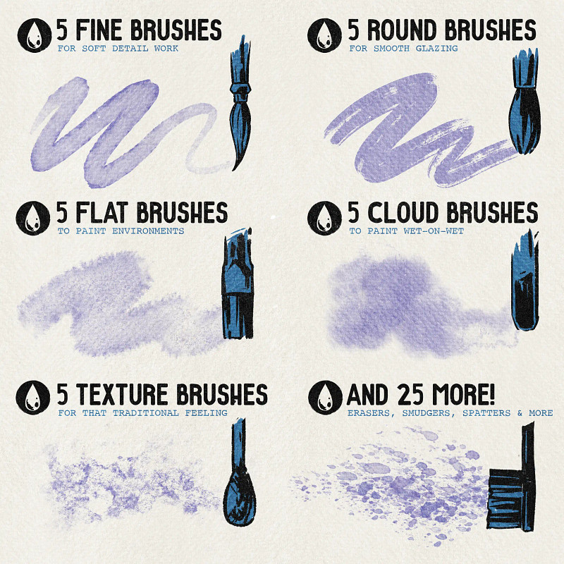 - Traditional Vibes, Digital Comfort – Juicy washes, soft bleeds, and textured edges that actually feel like real paint.